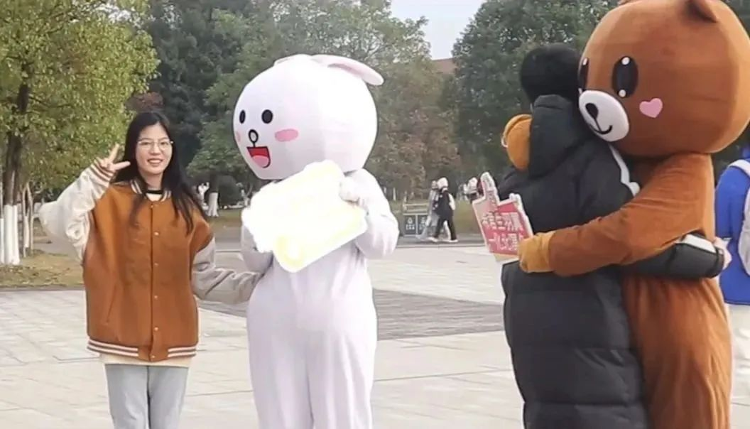 “考研加油抱”活动设置了与玩偶拥抱的环节,让考研学生在与玩偶拥抱的过程中获得温暖与鼓励。志愿者穿着玩偶服,用他们温馨的怀抱淡化考研学子的疲惫。当同学们看到可爱活泼的玩偶时,眼角荡起一片欣喜和悦。
