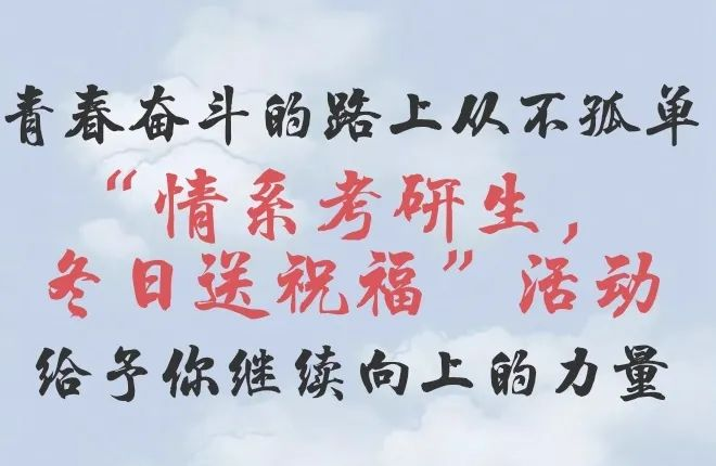 2023年12月20日, 由校团委青年志愿者服务中心、 校团委青年新媒体中心、 图书馆学生管理委员会, 联合举办的“情系考研生,冬日送祝福”活动, 在逸夫图书馆前开展。