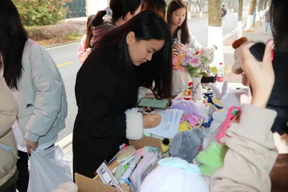值得一提的是,此次活动特别设立了党员先锋岗,党员干部们发挥了表率作用。他们身着“爱心红马甲”,早早到达现场,忙碌地布置摊位、摆放物品。义卖过程中,他们更是耐心细致地向过往同学介绍义卖物品,用真诚和热情感染了每一位参与者。在他们的带动下,许多同学纷纷驻足选购,让爱心在旧物间传递,实现了“爱不闲置,真情长存”的美好愿景。