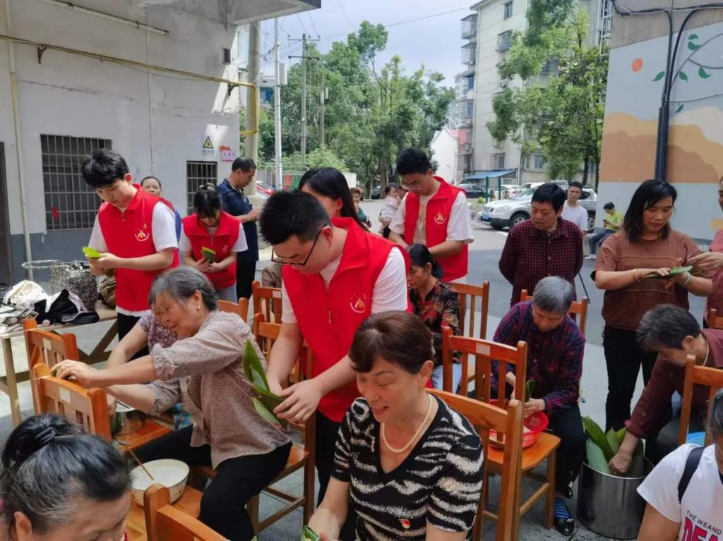 又是一年端午时,艾草萋萋粽飘香。6月6日,马克思主义学院学生团员在学院党总支的领导下前往益阳市赫山区南站社区,开展“党建引领庆端午,粽情粽意暖人心”主题团日活动。活动现场,学生团员和村民们围坐在一起包粽子,从卷粽叶、装米、到绑线……经验丰富的阿姨一边示范,一边耐心地讲解包粽子的技巧,手把手做好“传帮带”。学生团员边看边学、虚心请教,并在原有的基础上开拓创新,制作出各种各样的创意粽子。现场弥漫着浓浓粽叶香,气氛融融,欢声笑语不断。