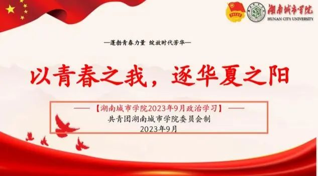 为深入贯彻党的二十大精神,学习共青团的十九大精神,增强广大同学对湖南省学生联合会的了解,坚定不移沿着习近平总书记指引的道路奋勇前进。2023年9月22日,我校各二级学院297个团支部围绕“以青春之我,逐华夏之阳”主题开展了本学期第一次政治学习。