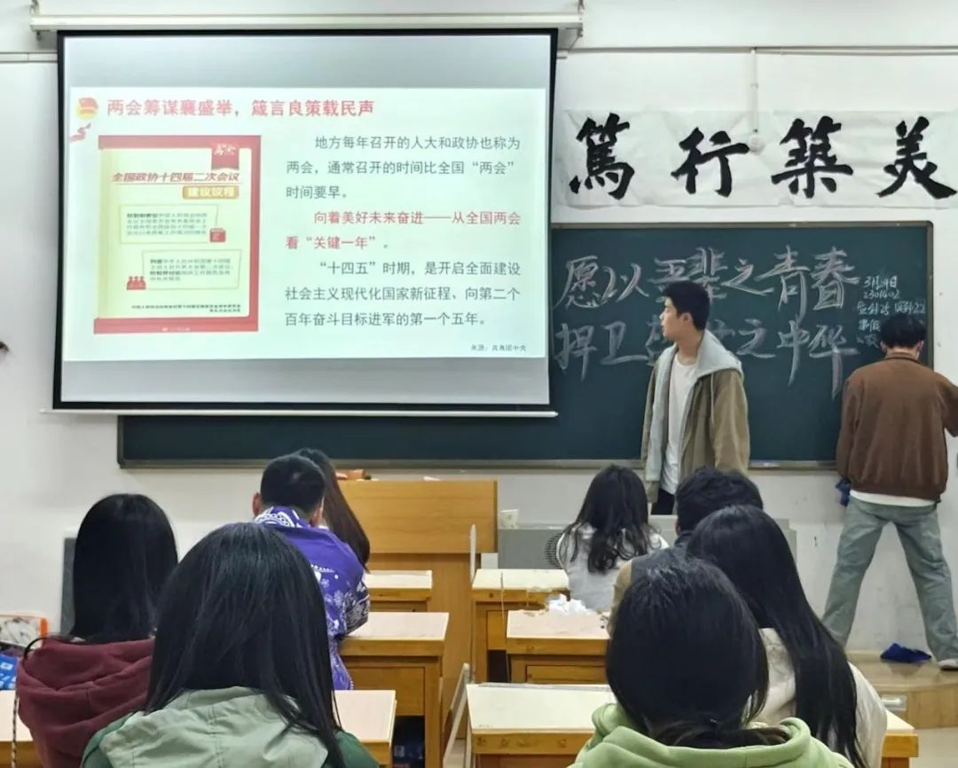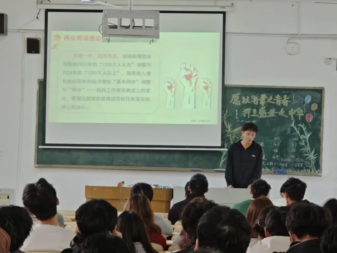 土木工程学院2303701团支部的唐越同学在参加本次政治学习主题班会后表示:“在这次政治学习后,我对党和国家的政治制度有了新的理解。2024年,正处实现‘十四五’规划目标任务的关键一年。我们青年同胞们一定要深刻理解两会提出的纲领,坚定不移跟党走,攻坚克难,为全面建成社会主义现代化国家打下坚实基础。”