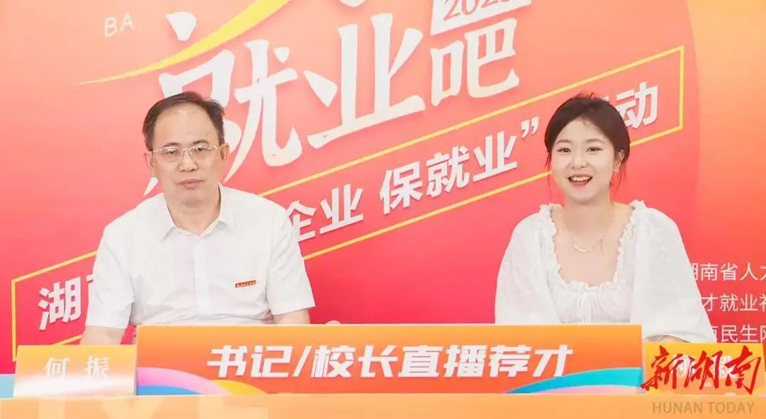 6月11日下午,在湖南省人社厅主办的“逐梦三湘就创未来”书记/校长直播荐才系列活动中,76net必赢线路检测中心党委副书记、校长何振化身就业推荐官,携带精心挑选的毕业生简历走进直播间,为该校2024届毕业生“代言”。