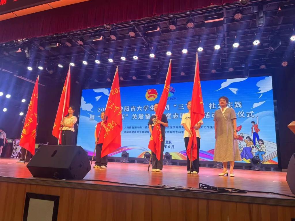 6月25日下午,由共青团益阳市委、益阳市教育局、益阳医学高等专科学校及益阳市学生联合会携手举办的2024年益阳市大学生暑期“三下乡”社会实践暨“七彩假期”关爱留守儿童志愿服务活动启动仪式在益阳医学高等专科学校举行,我校《和美“清溪”·艺起“村晚”》大学生志愿服务队、“艺”路“童”行志愿服务团、“以美塑村,以艺促兴”社会实践团、感光支教团、“达可tea”社会实践团、“心手相连'艺'路向前”志愿宣讲团等六支志愿服务团队作为学校代表受邀参加。