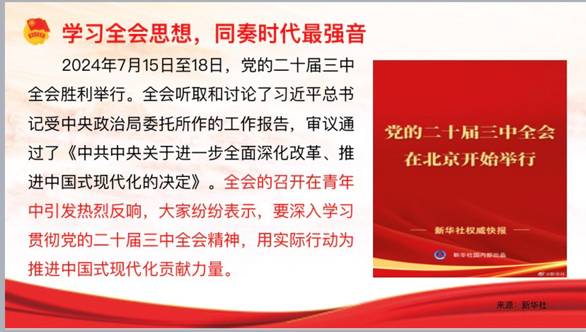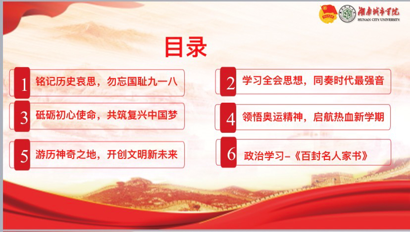 教师教育学院2314106团支部的易歆宇同学在参加本次政治学习主题班会后表示:“参与本次政治学习后,我深刻理解了九一八事变的历史意义与二十届三中全会精神的时代价值。九一八事变是日本帝国主义侵华的开端,它唤醒了中华民族的觉醒与抗争;而二十届三中全会则为我们指明了全面深化改革、推进中国式现代化的方向。作为新时代的青年学子,我们应铭记历史,勿忘国耻,增强民族自尊心和自信心,努力学习科学文化知识,提升自身素质和能力,以实际行动践行会议精神,为共筑复兴中国梦镌刻青春足迹。”