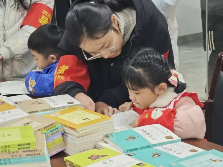 坐于暖室中,聚于书香里,卷册所展皆童趣,文墨流彩皆希望……志愿者与小朋友们一对一或一对多组成阅读小组,有些识字量较多、阅读能力较强的小朋友手持书卷,独自开启阅读之旅,若逢生僻字词或疑难章句,便会主动向志愿者请教。这样既解决了知识上的困惑,又在互动中培养了小朋友们主动求知、寻求帮助的能力,更提升了学习的自主性与自信心;有些小朋友则环坐于志愿者身畔,志愿者们充分发挥各自的特长与创意,以生动的语言、丰富的表情和形象的动作,将书中的故事活灵活现地展现出来,这种沉浸式的阅读体验,激发了小朋友们对阅读的热爱,让知识以鲜活的形式融入他们的心灵。