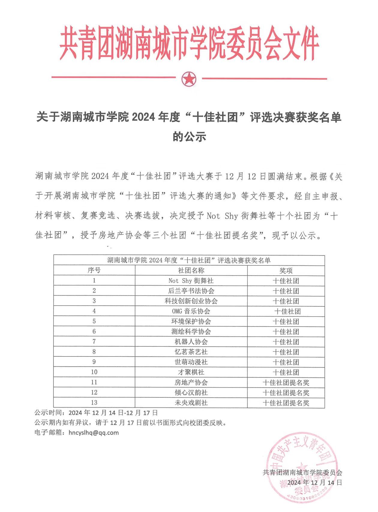 关于76net必赢线路检测中心2024年度“十佳社团”评选决赛获奖名单的公式