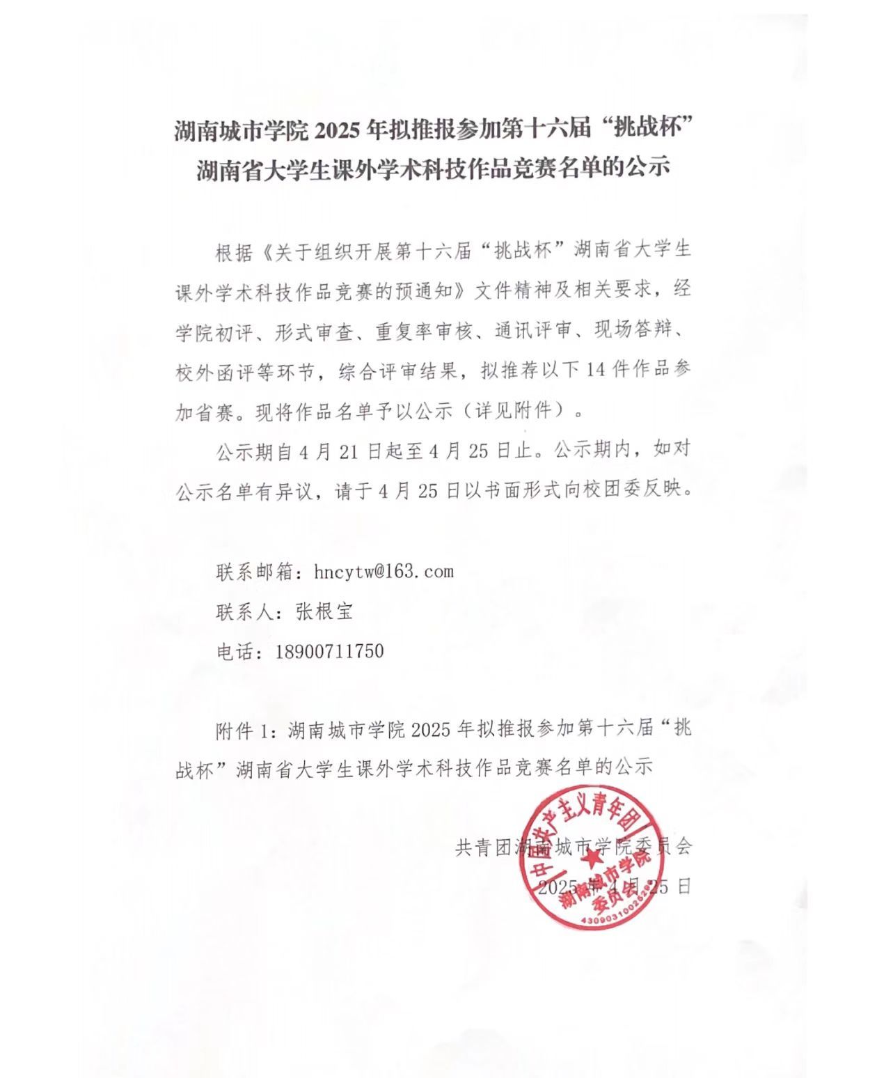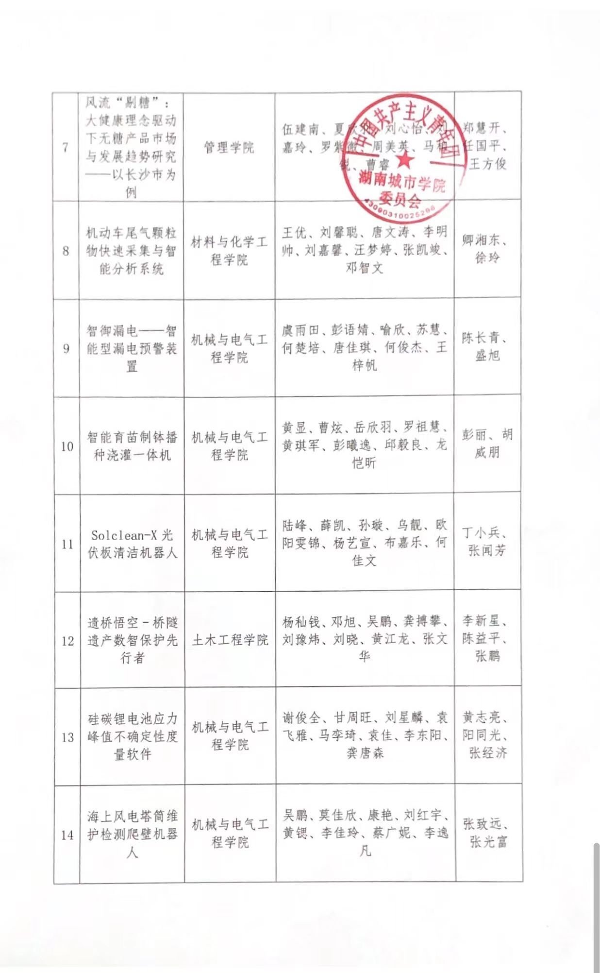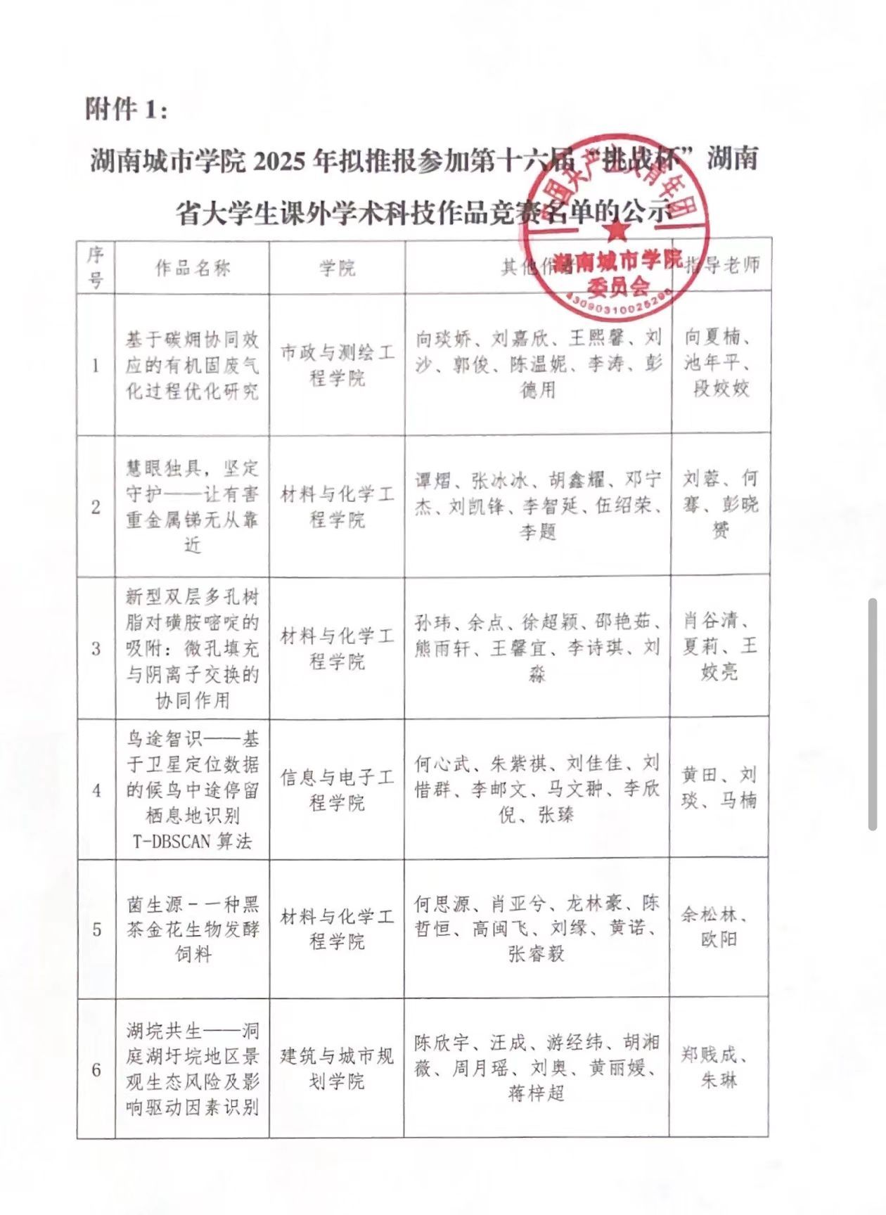 76net必赢线路检测中心2025年拟推报参加第十六届“挑战杯”湖南省大学生课外学术科技作品竞赛名单的公示